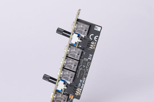 b:10 is a precise dual-channel utility module that combines attenuverters, voltage offset, and a slew limiter for signal shaping and modulation control. Its compact design features customizable gain settings and input normalization, making it an essential tool for both CV sculpting and audio manipulation.