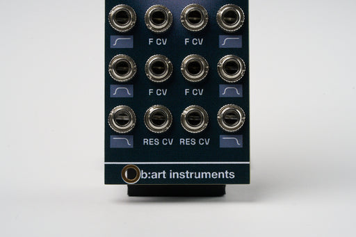 Two frequency CV inputs per filter for seamless mixing of control voltages, e.g. from an LFO + envelope