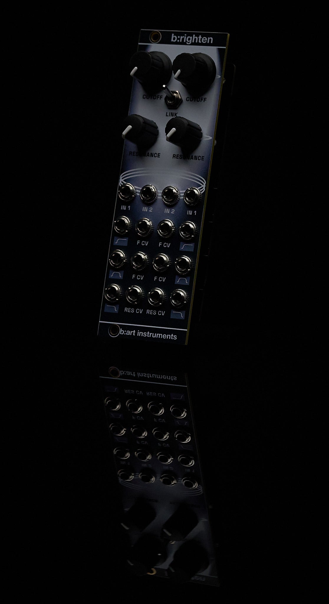 b:righten is a dual multimode filter Eurorack module. It features simultaneous lowpass, bandpass and highpass outputs, with voltage-controlled cutoff and resonance. With its classic MS-20 cores and filter link option, it offers extensive sound-shaping capabilities ranging from subtle & warm to harsh & resonant.